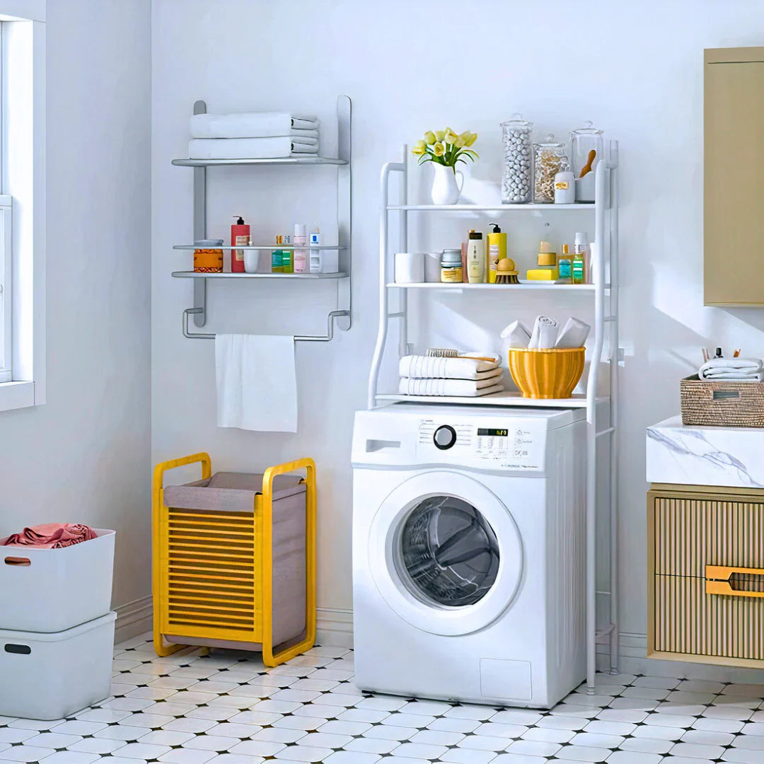 🧺Iskoristi slobodan prostor iznad mašine za pranje veša! Sa našom policom možeš pametno da iskoristiš vertikalni prostor u tvom kupatilu.